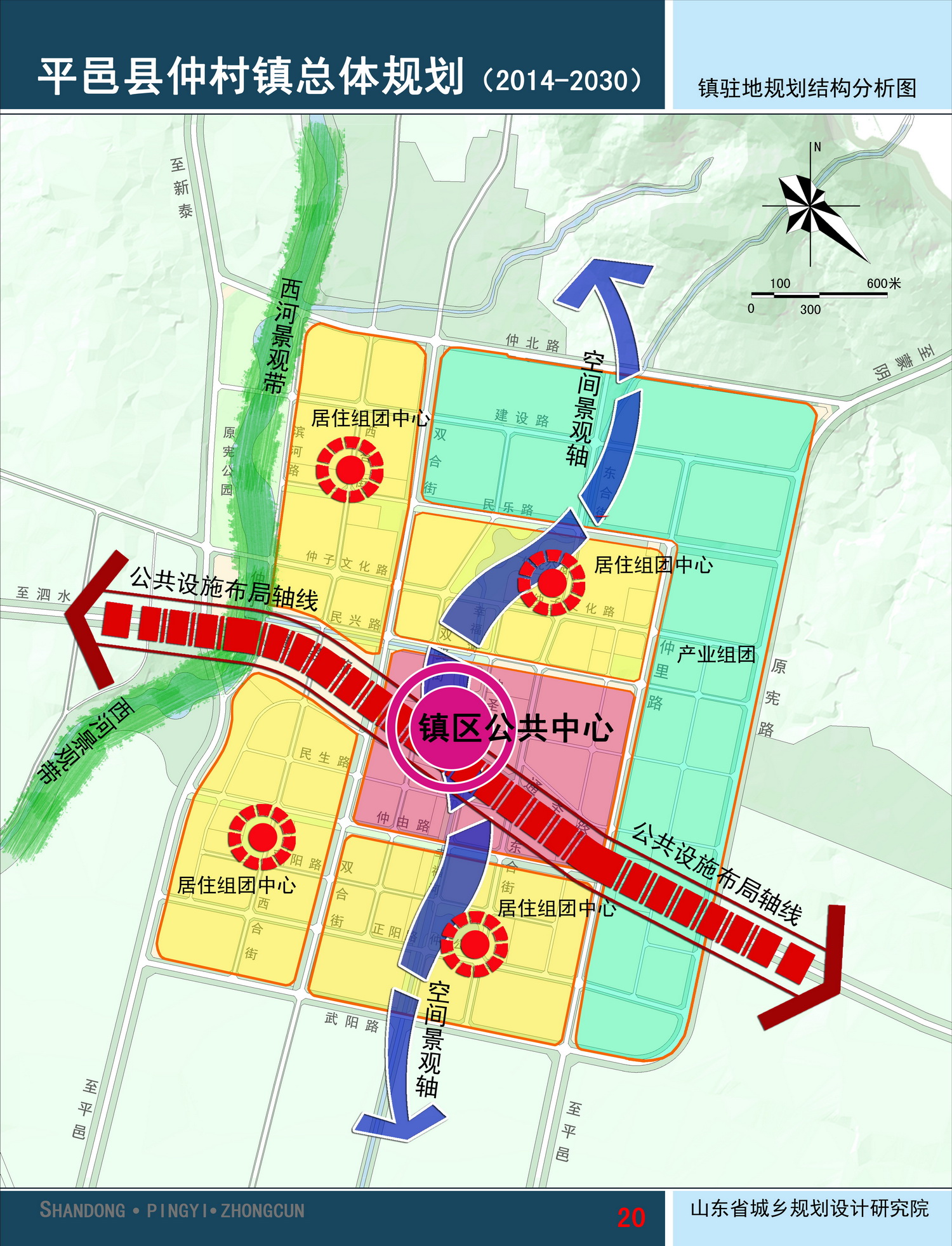 两轴:一个是沿仲子河形成镇域空间发展主轴,另一个是沿文泗路形成的镇域东西发展次轴。