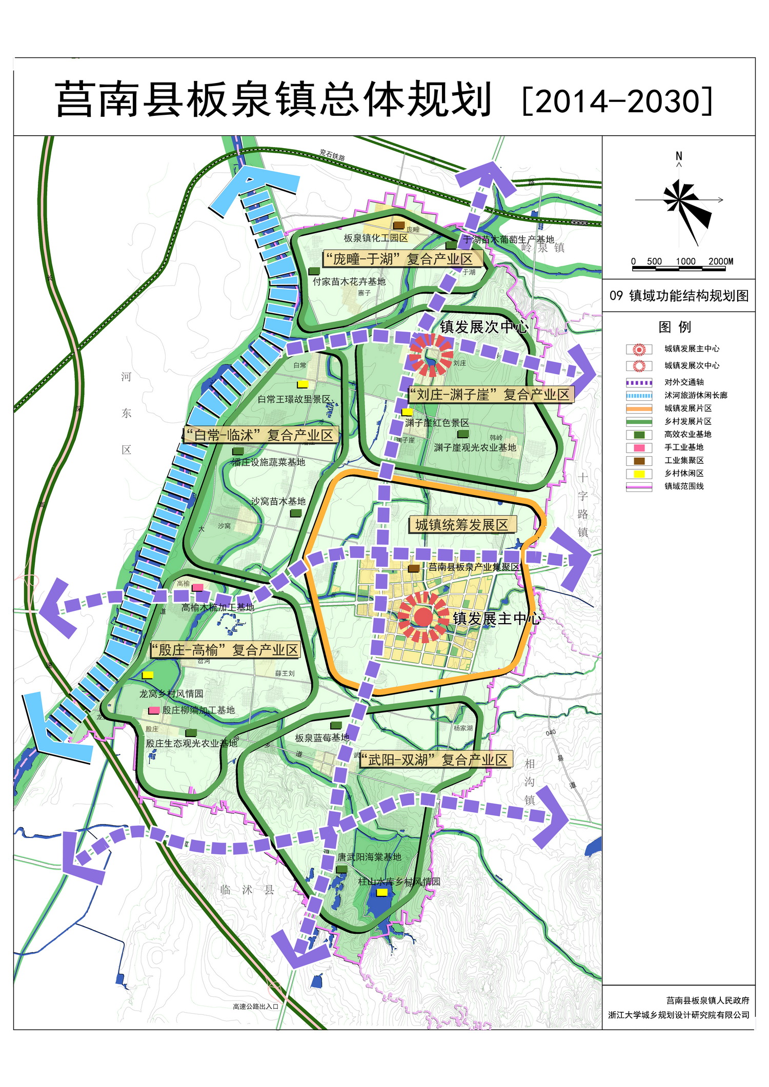 六片:指板泉城镇统筹发展区、“庞疃-于湖”复合产业区、 “刘庄-渊子崖”复合产业区、“白常-临沭”复合产业区、“殷庄-高榆”复合产业区、“武阳-双湖”复合产业区等六个分工。