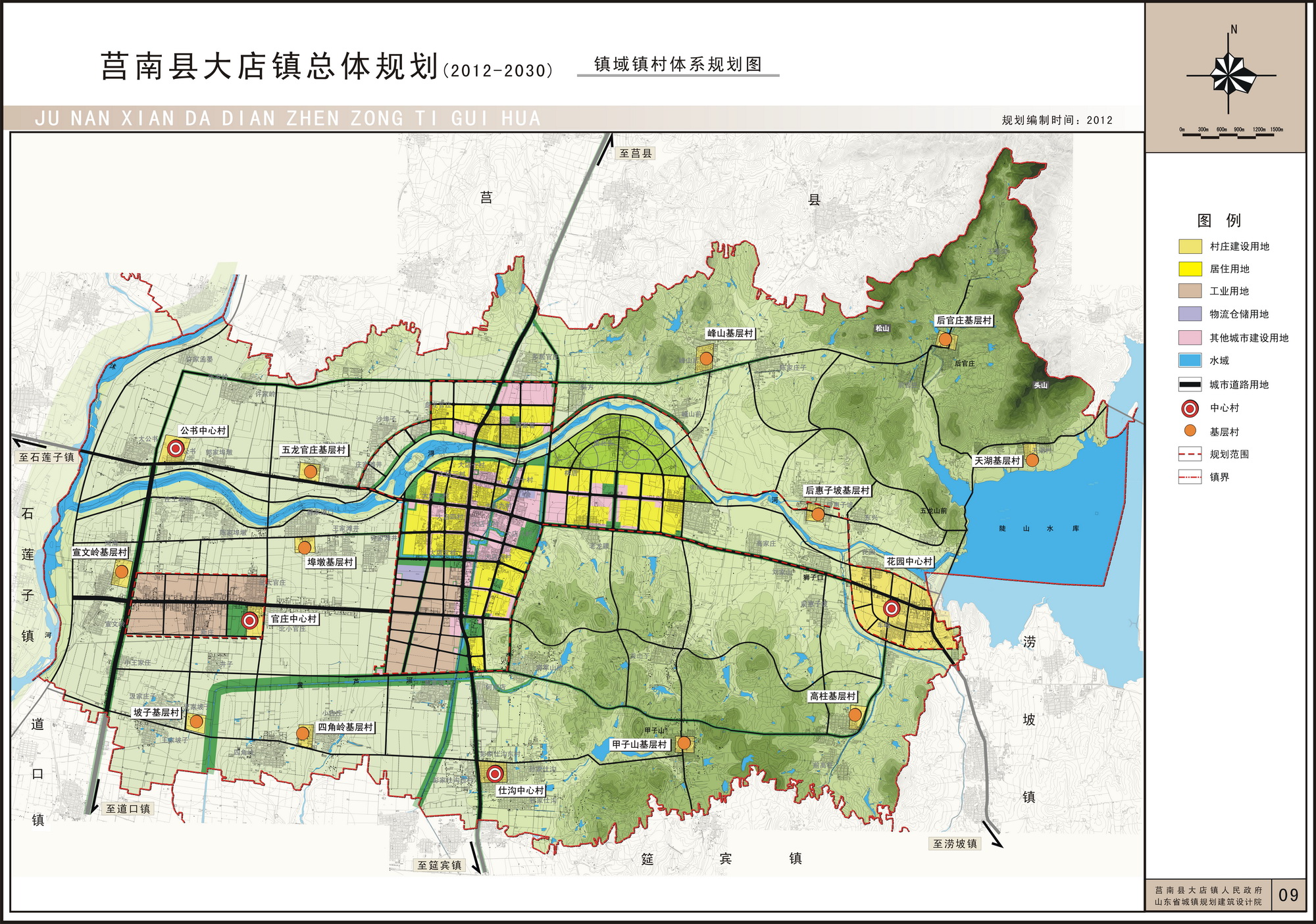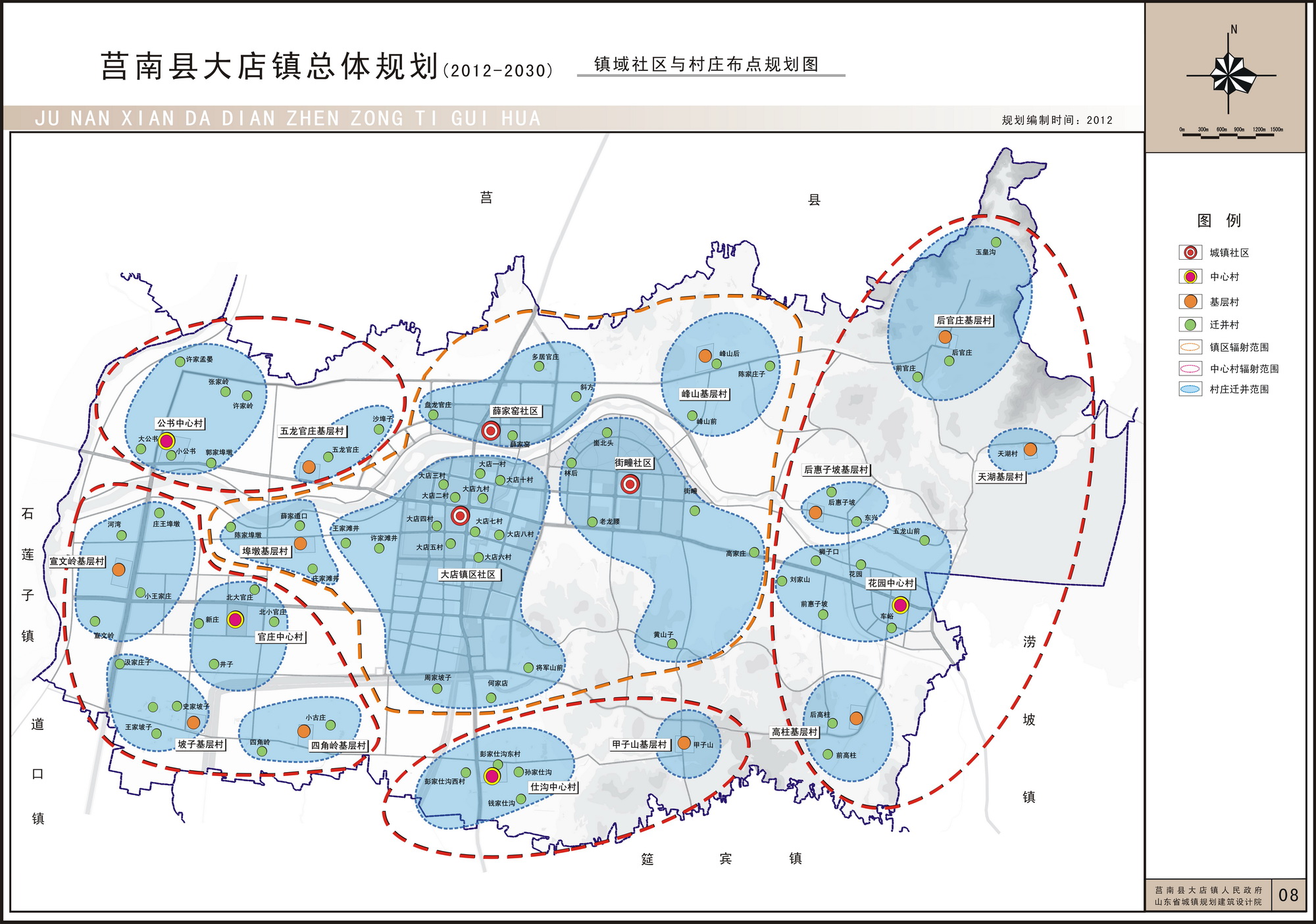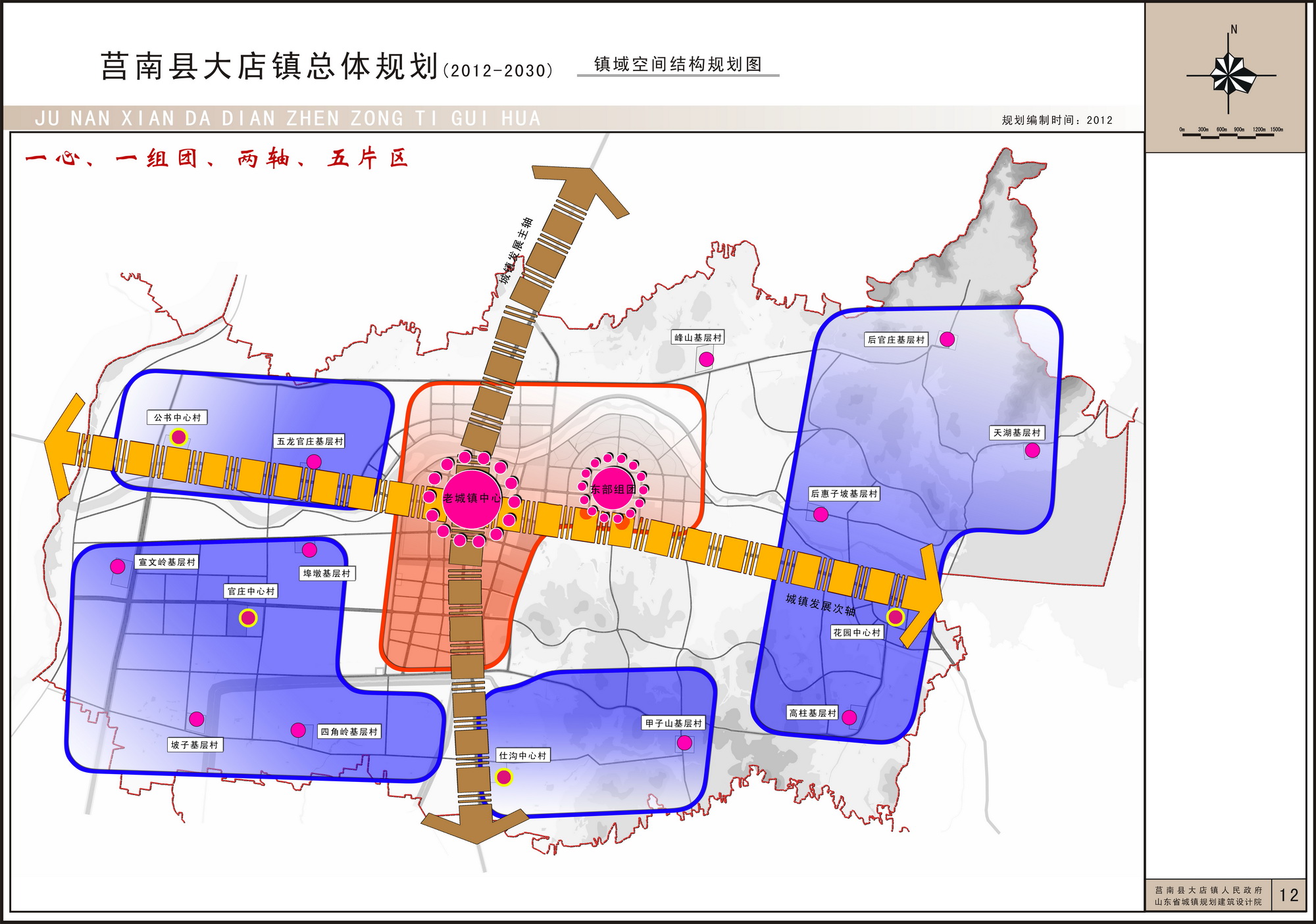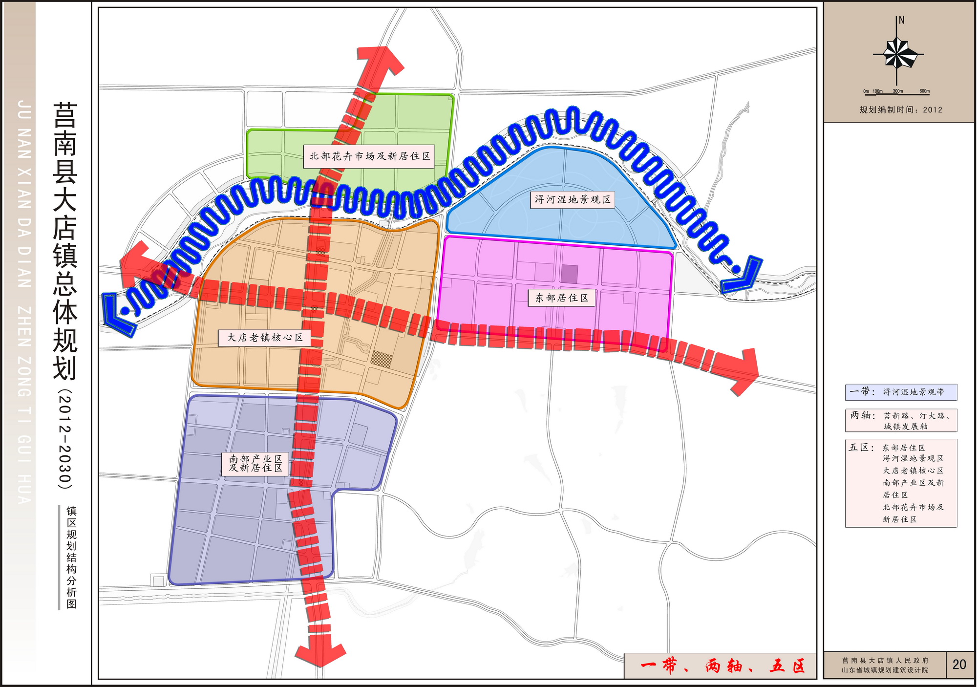 五区:指东部居住区、浔河湿地景观区、大店老镇核心区、南部产业区及新居住区、北部花卉市场及新居住区。 该规划由山东省城镇规划建筑设计院编制