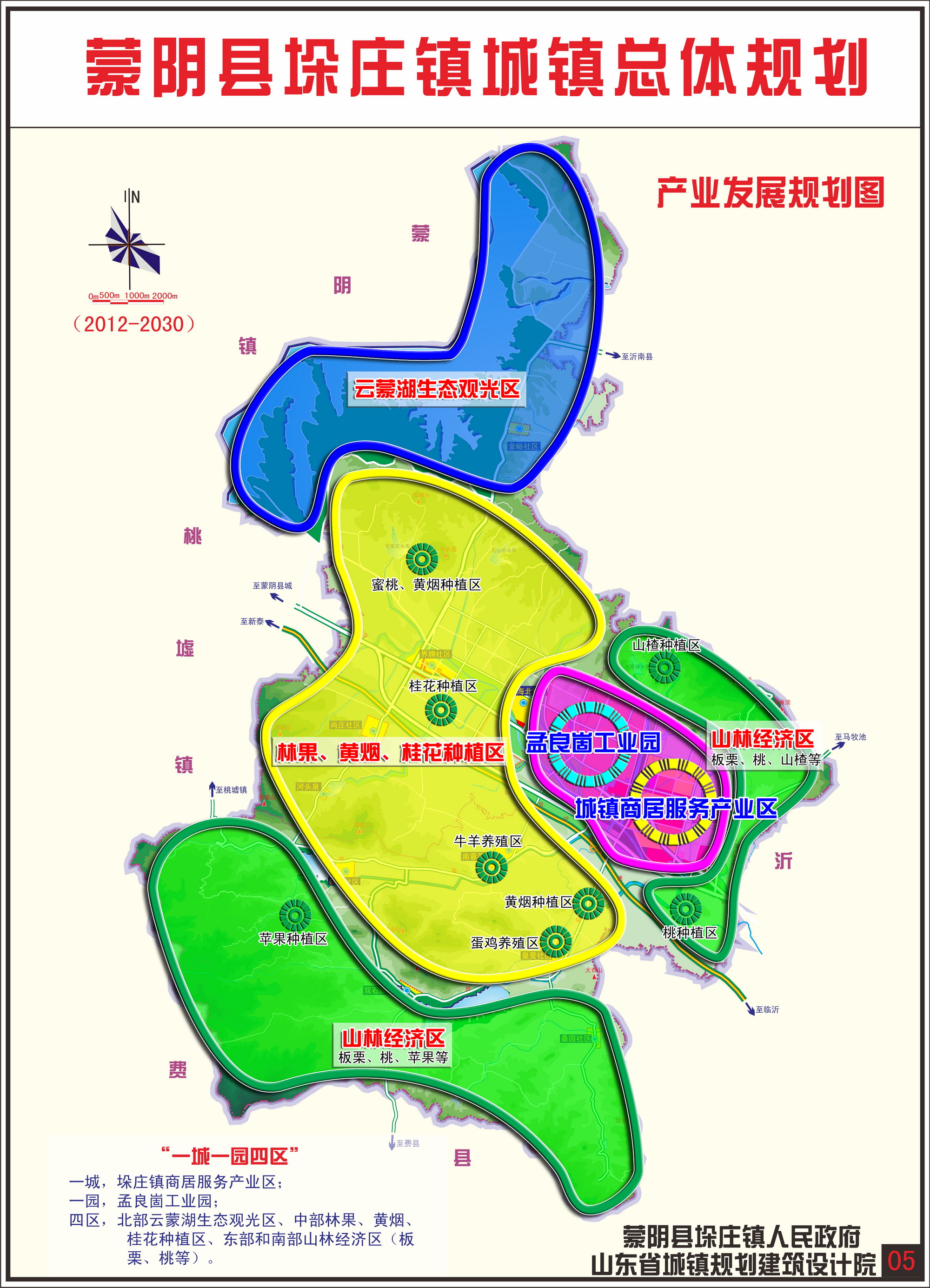 六区,西部孟良崮工业园区、中部城镇新区、商贸中心区、商住老区、南部仓储物流区和东部红色旅游区。