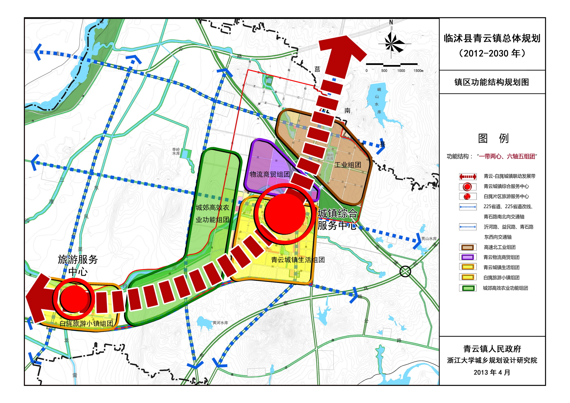 “五个功能组团”:高速北工业组团、高速南物流商贸组团、青云城镇生活组团、白旄旅游小镇组团、城郊高效示范农业组团。